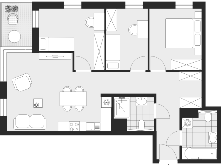 - Charakterystyka mieszkania: 73,78 m², 4 pokoje, 2 łazienki; stan: deweloperski