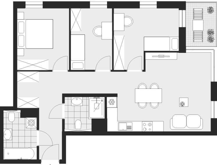 - Charakterystyka mieszkania: 73,50 m², 4 pokoje, 1 łazienka; stan: deweloperski