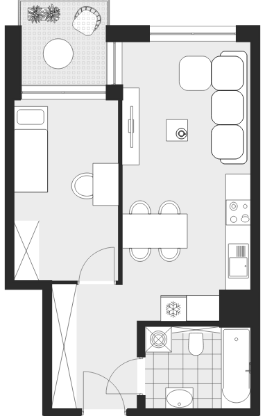 - Charakterystyka mieszkania: 39,11 m², 2 pokoje, 1 łazienka; stan: deweloperski