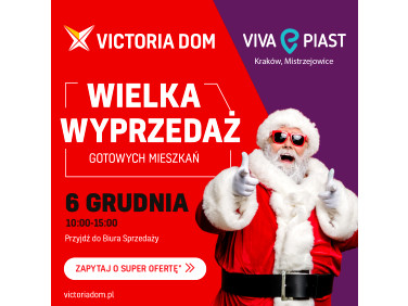 Czekamy 6 grudnia w godz. 10-15:00 ul. Powstańców 86 w Krakowie ze świątecznym klimatem i mikołajkowym rabatem. Przyjdź na dzień otwarty w VIVA PIAST i poczuj magię świąt z Victoria Dom!